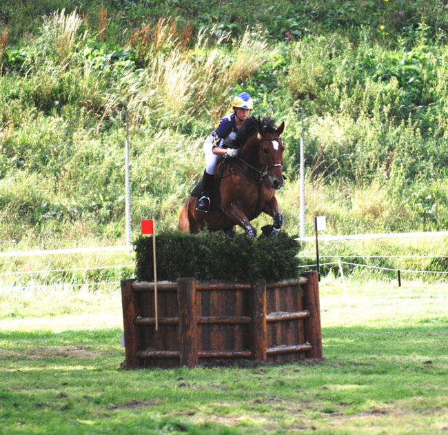Nur gerade drei der 39 gestarteten Paare schafften die Idealzeit von 6 Minuten und 7 Sekunden, ein Einziger auf die Sekunde genau: Jacopo Buss und Galant de Chevrel. Die beiden schienen sich richtig zu amüsieren auf der wunderschön gebauten Strecke und bewältigten alle Brocken mit Leichtigkeit. Galant gehört zu den wenigen Pferden, die auch aus hohem Tempo sehr sicher springen im Gelände. Umso ärgerlicher ist es bei so viel Talent im Cross, dass die beiden noch kein taugliches Rezept gefunden zu haben scheinen für das Parcoursspringen. Der riesige Springplatz - in der Schweiz würde er für ein Stadion-Military reichen - und die luftige Bauweise des 1.25cm-Parcours forderte generell erstaunlich viele Fehler auch bei routinierten Paaren, aber mit fünf Fehlern war dann leider auch das QR für Jacopo und Galant dahin. Immerhin kamen die beiden auch dank der stark verbesserten Dressurperformance in der Schlussabrechnung auf den achtbaren 13. Rang.
